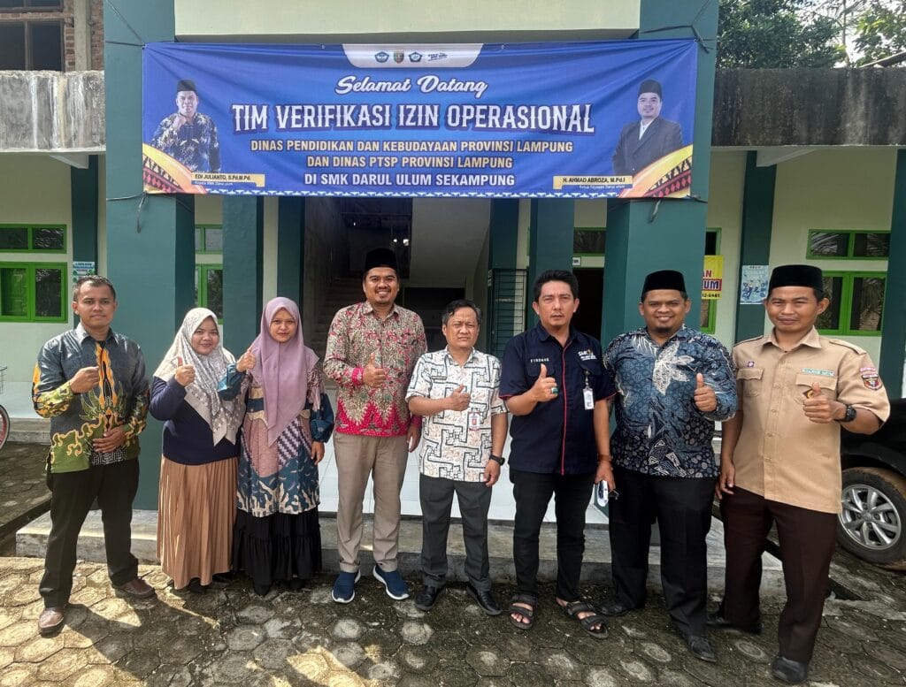 Lampung Timur – Suasana penuh semangat terasa di lingkungan SMK Darul Ulum saat menerima kunjungan Tim Verifikasi Izin Penambahan Jurusan Baru, Jumat 8 Agustus 2025. Tim ini berasal dari Dinas Pendidikan dan Kebudayaan Provinsi Lampung. Kegiatan ini menjadi langkah penting dalam upaya pengembangan program keahlian baru sekaligus peningkatan mutu layanan pendidikan di SMK Darul Ulum.